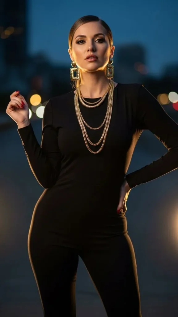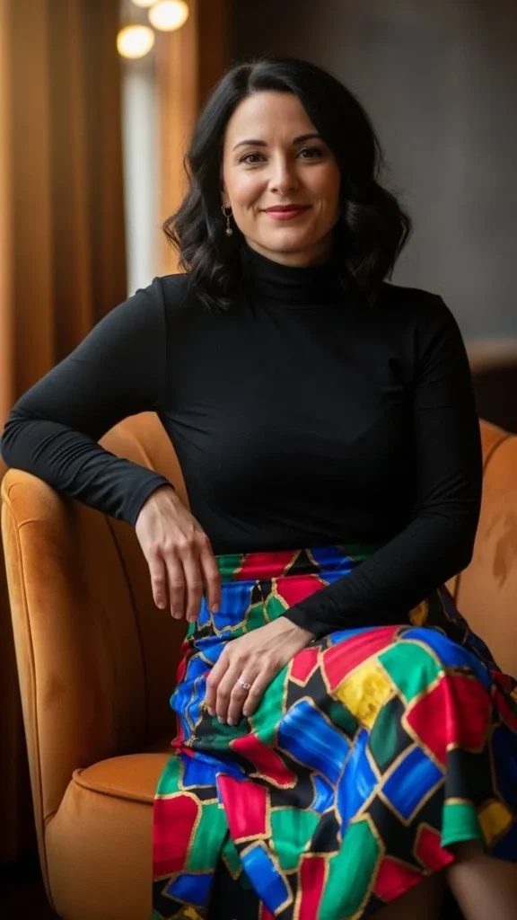 A fitted black turtleneck is a great base for any Valentine’s look. Use it with a unique skirt—think bold prints or textures you already own. This is comfortable, sophisticated, and budget-friendly, perfect for dinner or a day date. Layer with necklaces for a personalized touch.