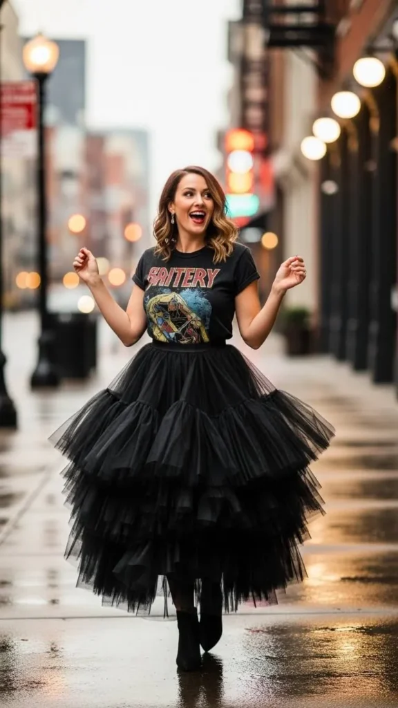 Tulle skirts feel fancy but can be affordable at discount stores or handmade by layering tulle fabric. Pair with a graphic tee to balance soft and edgy vibes. Swap out expensive tops for your own creative DIY designs or thrift finds.