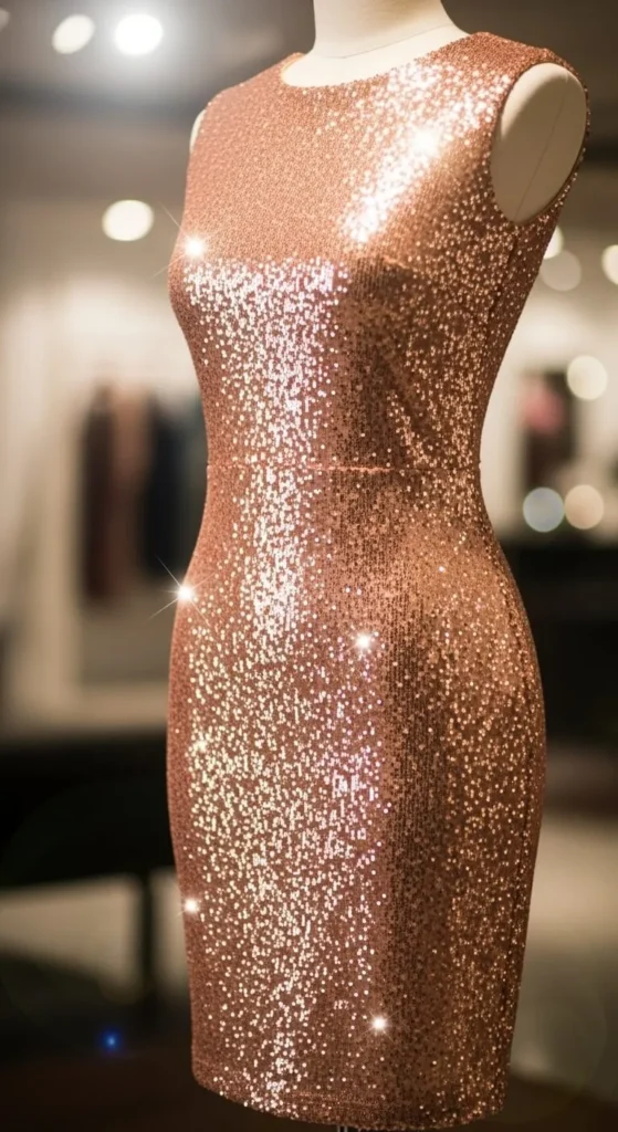 Rose gold feels warm and flattering on many skin tones. A bodycon dress works well for night events and house parties. To keep it comfortable, choose stretchy fabric. Add neutral heels or metallic sandals. For an affordable touch, use stick-on body gems on your collarbone and arms. If the dress feels too tight, throw on a loose blazer in nude or beige. Keep hair soft with loose curls. A light shimmer spray helps bring the whole look together. You don’t need heavy accessories—rose gold already shines on its own. A dainty bracelet or ring is enough. This dress is great for dancing and late-night gatherings because it stays in place and photographs beautifully.