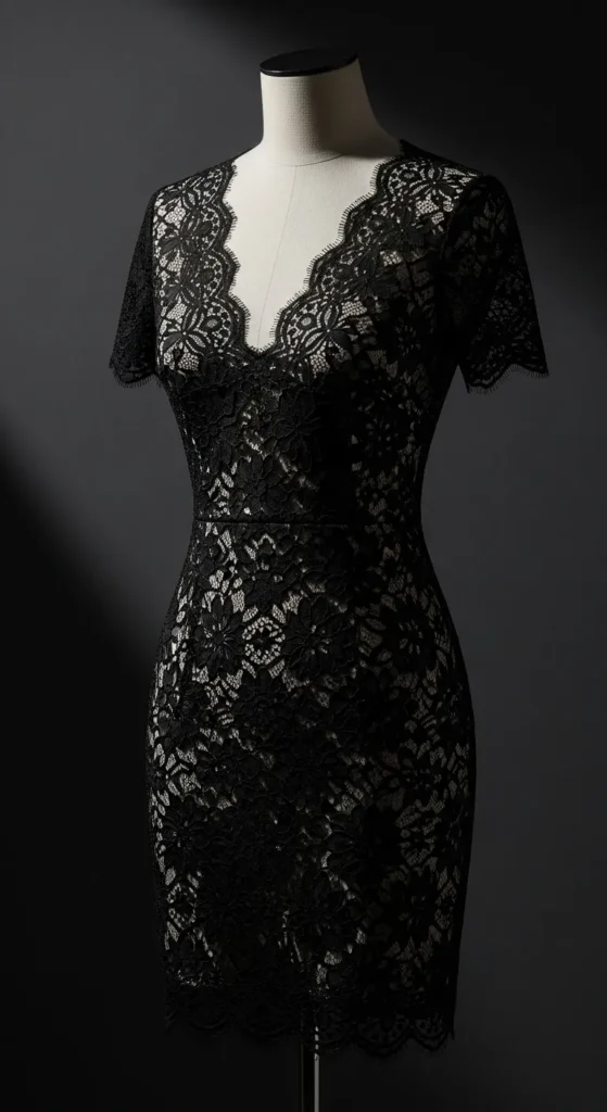 A black lace bodycon is timeless and chic. Lace adds texture without heavy jewelry. Keep makeup natural with a slight smoky eye. Pair with nude or black heels. If the dress feels plain, add a metallic belt or a sparkling hair clip. Lace is forgiving for layering—you can add a slip or camisole for comfort. A half-up hairstyle works well to keep lace detailing visible. Perfect for cocktail parties or intimate dinners. Budget-friendly DIY: glue a small brooch on the waist or neckline to add personality without spending much.