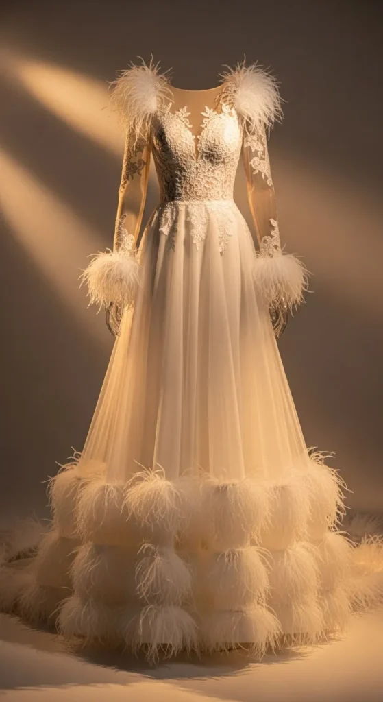 A feather-trim dress feels fun and festive. White creates a soft snowy look that suits Christmas parties. Feather cuffs or hems add motion and charm without looking overdone. To keep it budget-friendly, choose a basic white dress and glue removable feather trim from a craft store. This gives the same effect for a fraction of the price. Pair the dress with nude heels or soft pink sandals. Silver earrings complete the outfit. A blush-toned makeup look works best here. Don’t worry about perfect curls—messy waves feel natural and flattering. Carry a small clutch in white or silver. If the dress needs shape, add a satin ribbon belt. This outfit works great for photos because the feathers create movement when you pose or walk.
