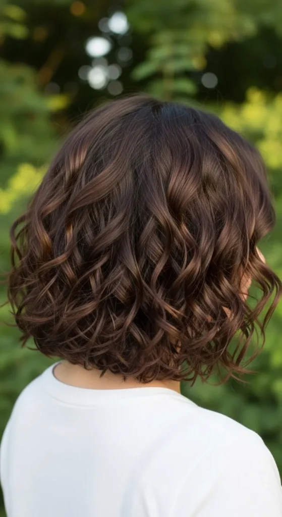 The soft romantic curly bob focuses on gentle, loose curls. It gives a sweet and natural look. This style works best for loose curls or waves. Ask for soft layers to keep movement. To style, apply a light curl cream. Twist a few front pieces around your finger for extra definition.