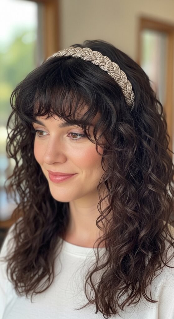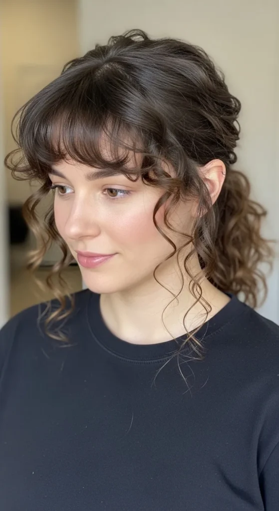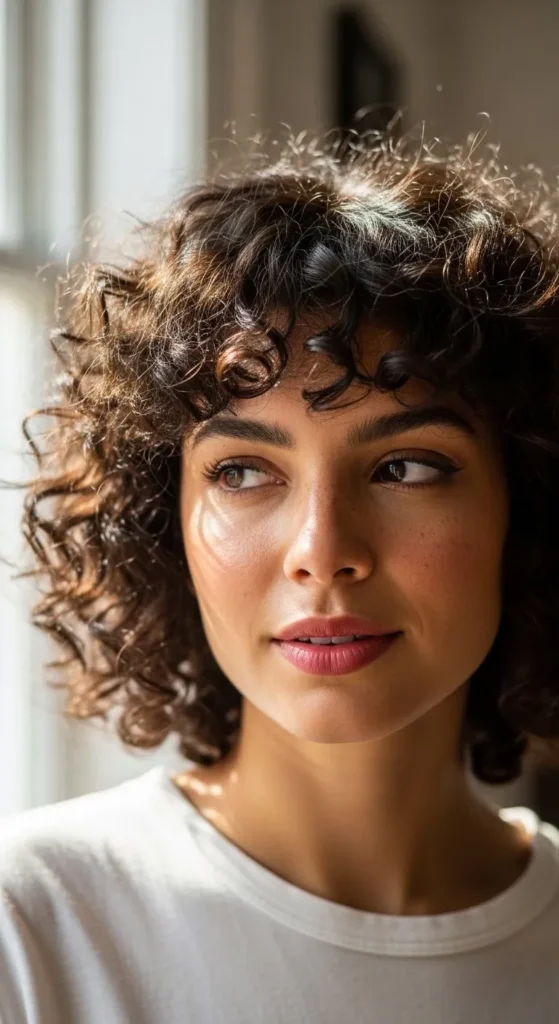 Curly hair with bangs is a fun and flexible way to frame your face while showing off natural texture. From soft curtain bangs to braided crowns, each style offers an easy way to refresh your look at home. Most of these hairstyles need only simple tools, basic products, and a little practice. With finger-styling, air-drying, and overnight tricks, you can maintain beautiful curls without spending much money. These 25 styles suit different lengths, curl types, and lifestyles, making it easier to find one that fits you. Try different looks, adjust them to your routine, and enjoy experimenting. Curly bangs add charm, movement, and personality to your hair, helping you feel confident and comfortable every day.