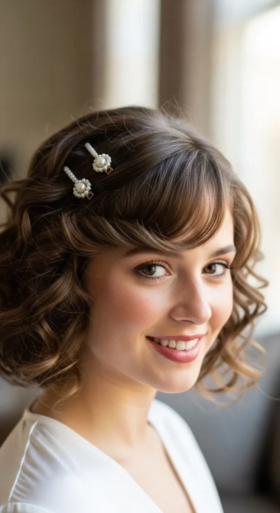 Twist small sections on both sides and pin them back. Leave bangs loose. This adds structure while keeping curls playful. No heat is required.