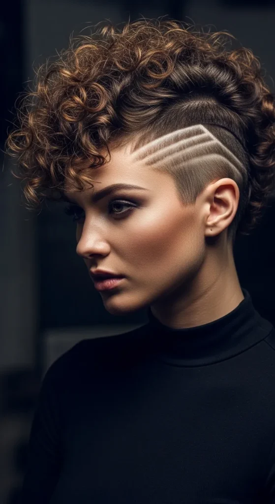 Adding a shaved line or small design gives your pixie personality. It turns a basic cut into something artistic. Keep the design simple if you want it workplace-friendly. A single curved line works well. Use a detail trimmer at home to maintain the shape between appointments. Move slowly and carefully. Keep curls on top soft and defined with light gel. Balance is key. Plan touch-ups every three to four weeks if you want the design sharp. This style is bold but still easy to manage daily.