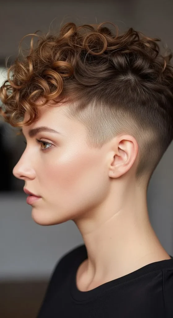 This style keeps the sides short and neat while leaving the top full of curls. The contrast adds shape and height. It draws attention upward and frames your face beautifully. Ask your stylist for short tapered sides and at least two inches of length on top. This keeps curls springy and soft. Style with a small amount of curl cream. Scrunch gently and let it air dry. Flip your head upside down for extra lift without using heat. Maintenance is simple. Clean up the neckline at home with a small trimmer to save salon money. This cut works well for thick hair because it removes extra bulk on the sides. It feels lighter and dries faster.