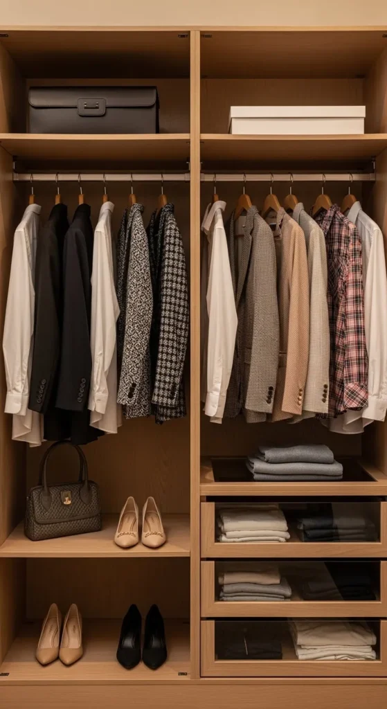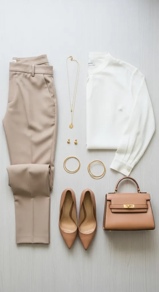 Choose blazers, trousers, button-down shirts, and closed shoes. Keep makeup natural and accessories minimal.