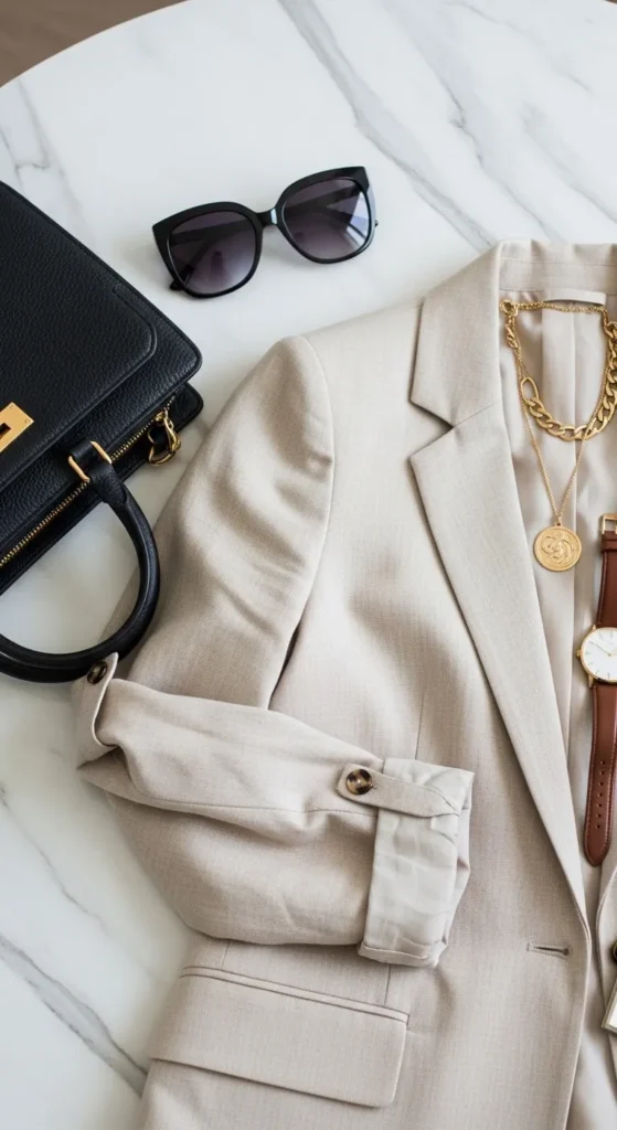 • A neutral blazer or jacket