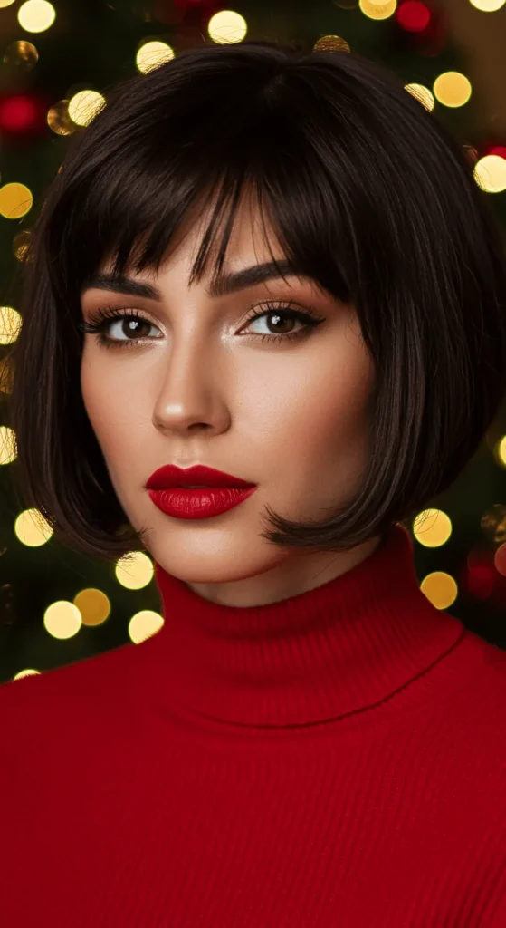 A messy ponytail can be stunning with the right texture. Add dry shampoo or texturizing spray to create volume, then tie your hair mid-height. Wrap a small piece around the elastic to hide it. Pull a few pieces loose around your temples for softness. The look feels relaxed yet party-ready. Add glitter spray or a sparkly scrunchie for extra holiday fun. It’s low effort and looks amazing in photos.
