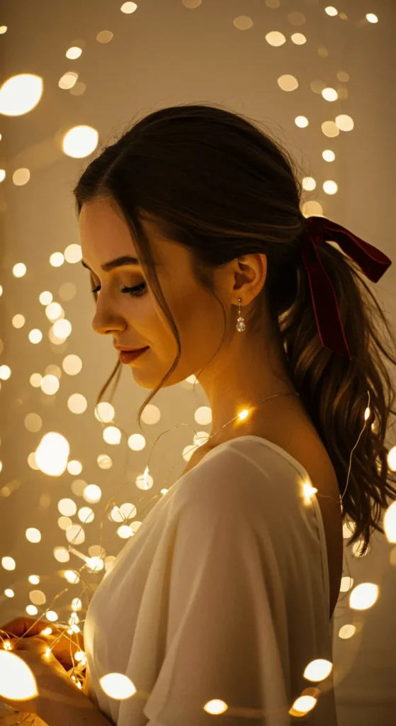 A simple ribbon can transform your ponytail. Use satin or velvet to tie around your base. It gives a festive touch instantly. Smooth your ponytail or add waves for movement. You can color-match the ribbon with your outfit for coordination.