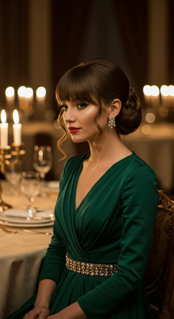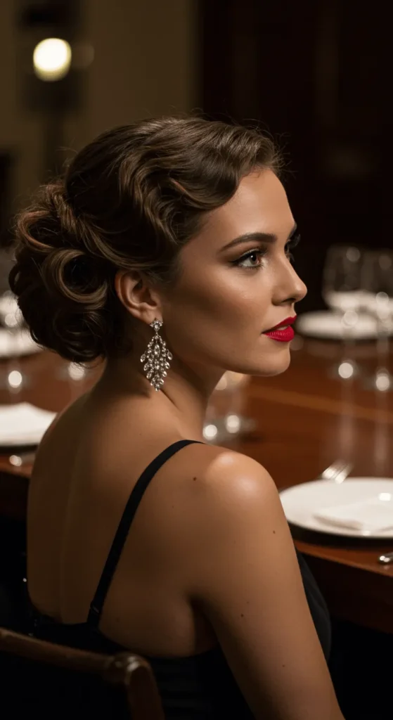 Romantic updos are perfect for formal holiday parties. Curl your hair first, then twist and pin it loosely at the back. Leave soft curls around your face for a dreamy effect. You can use floral pins or pearls for a gentle sparkle. It looks like you spent hours but takes 15 minutes tops.