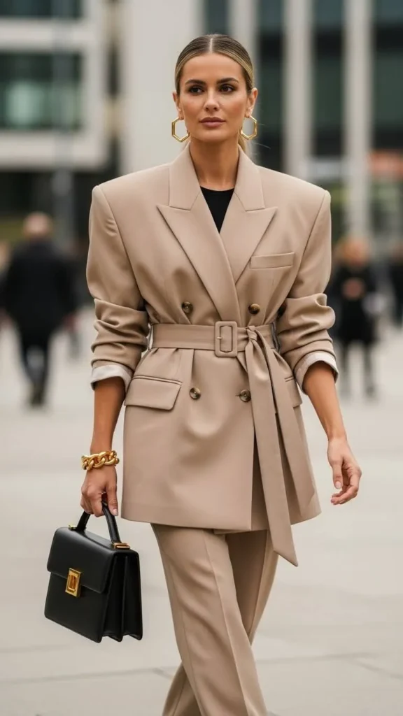 - A bold belt on a monochrome outfit