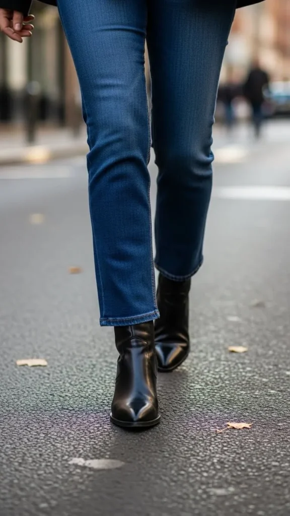 - Wide-leg jeans add structure and work best with fitted or tucked-in tops