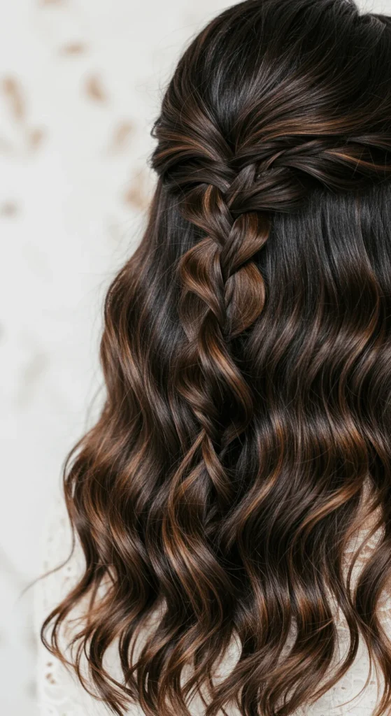 - Half-Up Fishtail: Perfect for weddings or dates—pair it with soft curls.