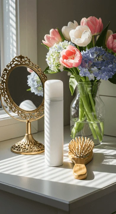- Mist your hair with a light-hold hairspray to keep everything in place.