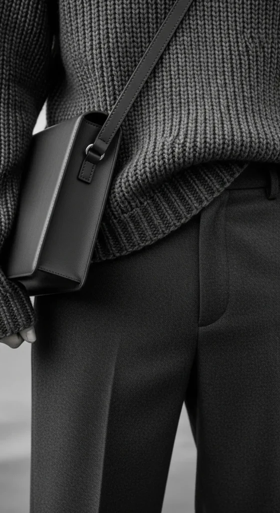 Monochrome outfits highlight the body’s lines more clearly, so clean tailoring makes everything look intentional and polished.