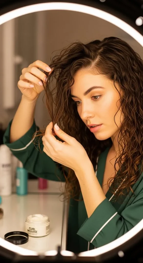 - Add a styling mousse or curl cream. This helps give your strands grip and definition.