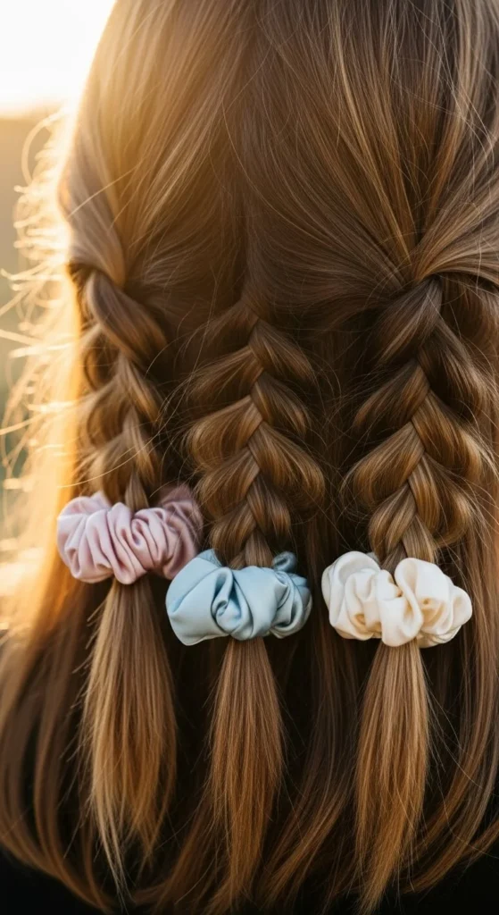 • Twist each side tightly and secure with a soft scrunchie.