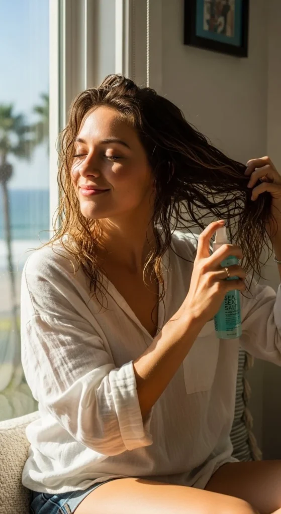 If you’re heading out, you can add a touch of finishing oil just to the ends—it keeps everything smooth while enhancing that natural beachy shine.