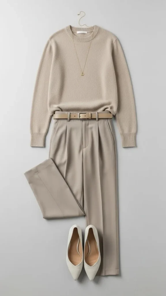 Wearing one color from head to toe is one of the quickest ways to look taller. This creates a long vertical line so your eyes move smoothly from top to bottom without breaking the silhouette.
