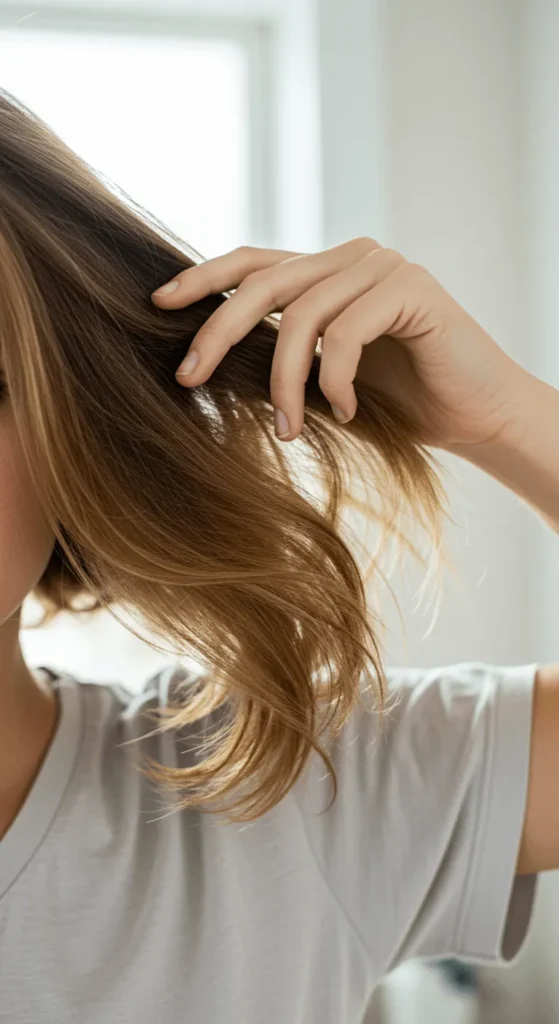 → Mess it up intentionally! Gently tug sections loose and pull out a few random strands.