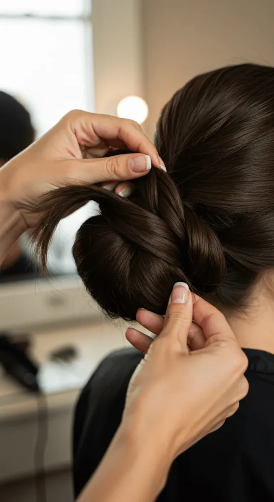Pro Tip: Use hairpins that match your hair color for a natural look. If you want extra volume, gently pull the bun apart after securing it.