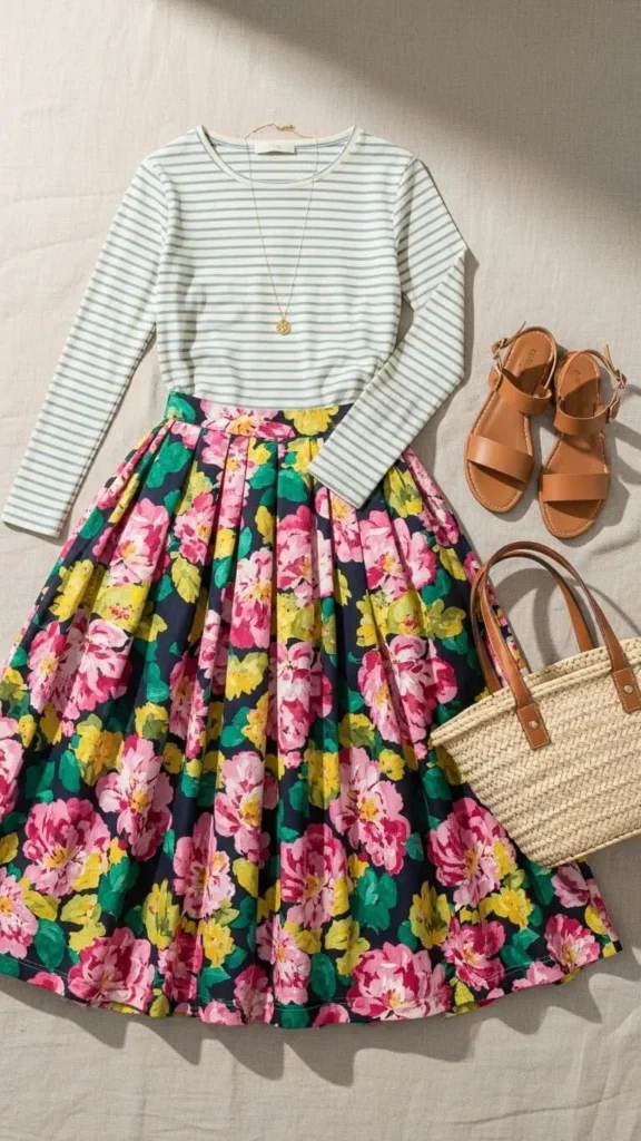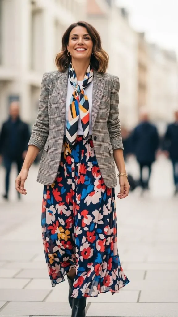 If you’re unsure what to mix first, start with stripes. A striped shirt under a floral jacket or a striped skirt with a printed blouse is a great place to begin.