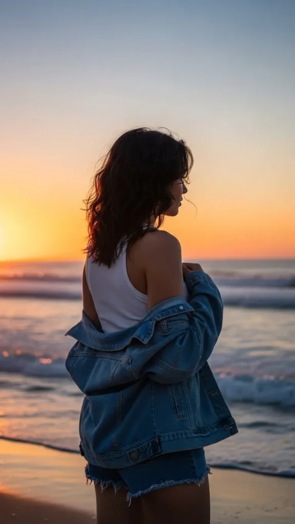 Summer evenings or breezy days are perfect for a denim jacket over a tank top or sundress. Wearing it open or draped over your shoulders keeps the outfit cool and casual.