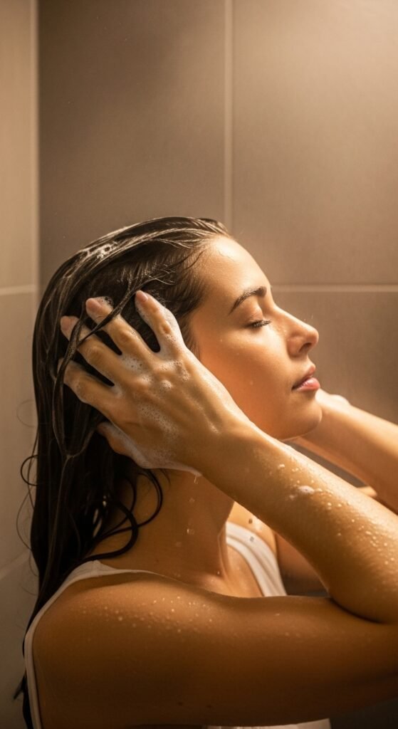 • Gently massage your scalp in small circular motions for 5–10 minutes.