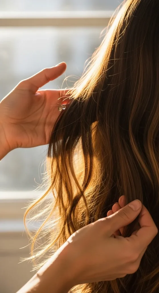 Once your hair is towel-dried, apply a few drops of lightweight oil (like argan or almond) to the ends. This helps lock in moisture and tame frizz without weighing your hair down.