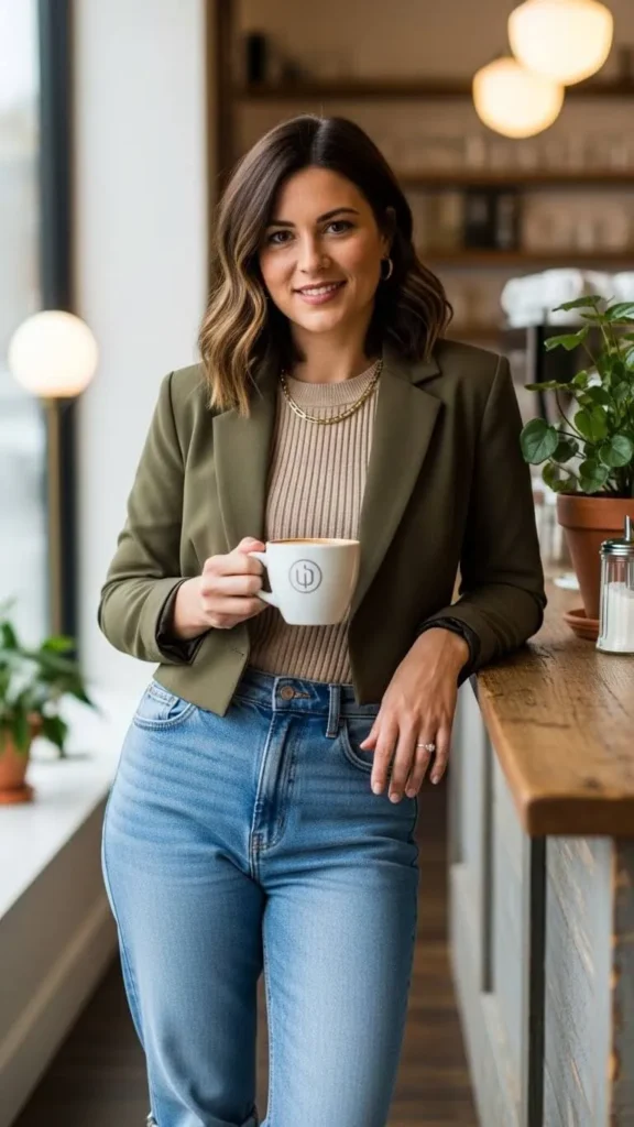 Layers are your secret weapon when styling mom jeans. They add depth, polish, and personality to even the simplest outfit.