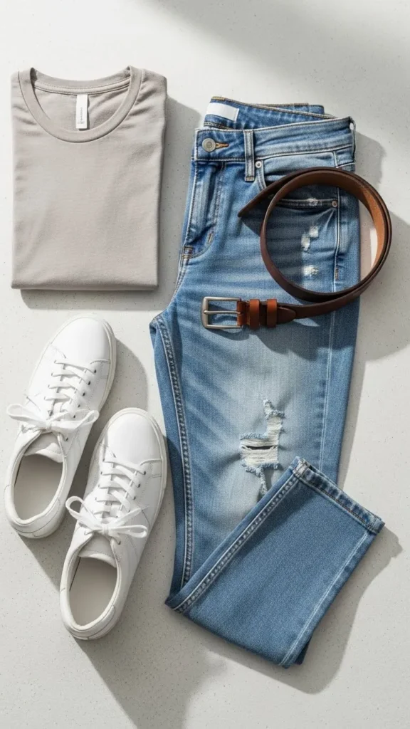- Straight-Leg Jeans: Keep it simple with minimal accessories and a tucked-in tee.