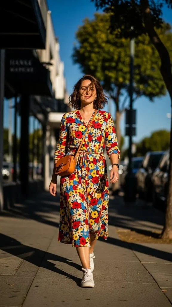 - Midi Dresses: A flowy midi dress with clean white sneakers creates a chic, effortless vibe.
