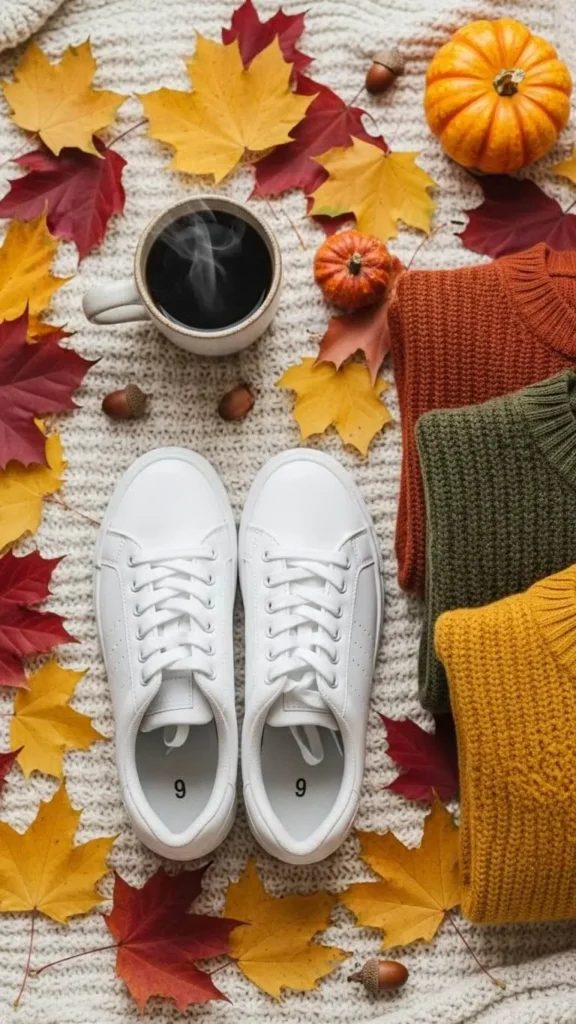 - Jewelry: Keep it minimal—delicate chains or small hoops match the clean aesthetic of white sneakers.