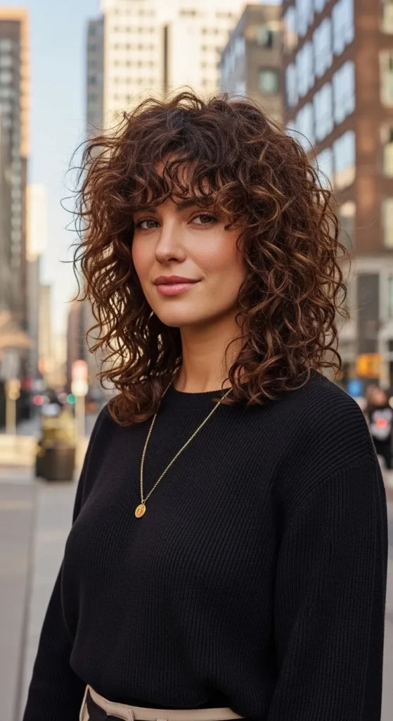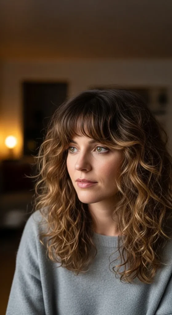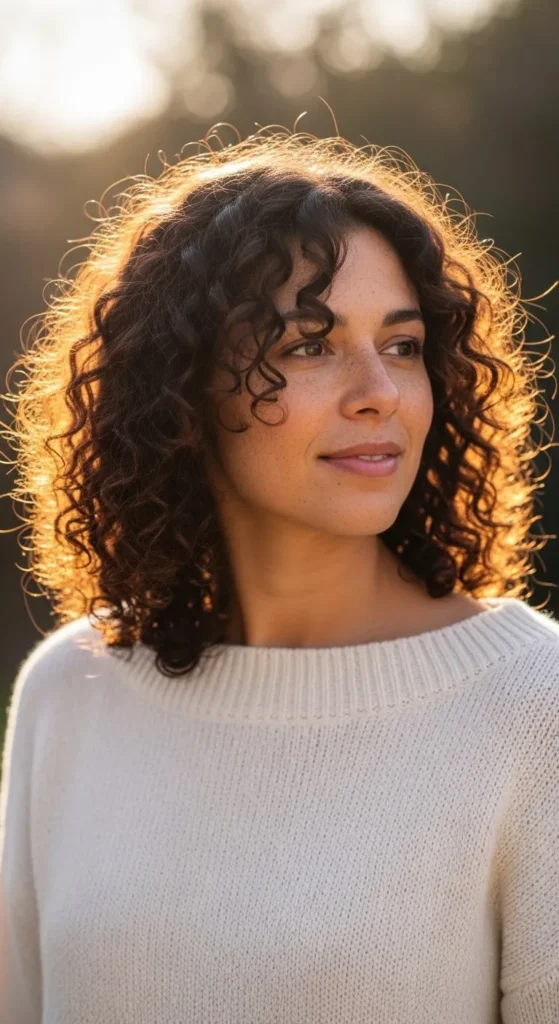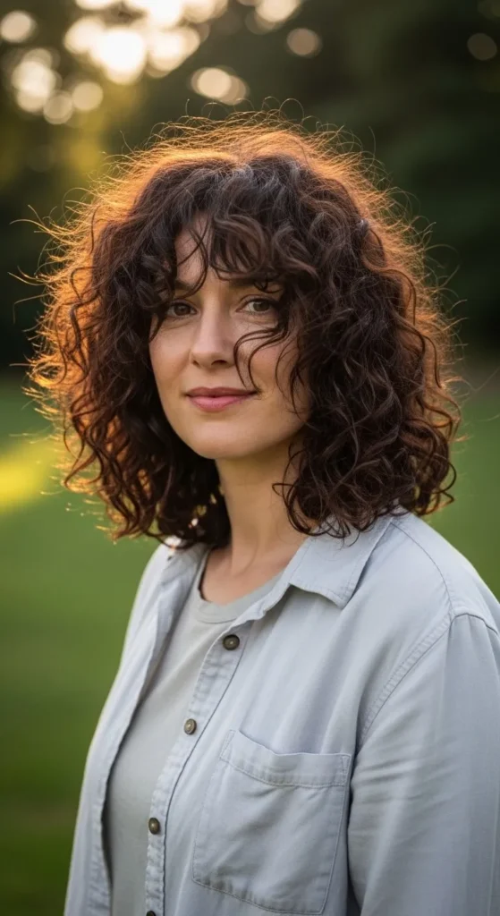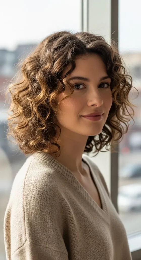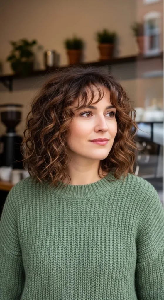 Soft shoulder-length layers are perfect if you want curls that move freely without looking heavy. This cut works well for busy routines and low-maintenance styling. The layers remove extra weight and help curls fall in a natural pattern. You can air-dry your hair and still see shape. Ask your stylist for long, blended layers instead of sharp cuts. If you trim at home, cut small sections while your hair is dry so you can see how curls sit. Use a simple leave-in conditioner to keep strands soft. On a budget, mix water with a little conditioner in a spray bottle and refresh curls in the morning. Scrunch gently and avoid brushing when dry. This style fits work, casual days, and family events. It also grows out well, so you do not need frequent trims.