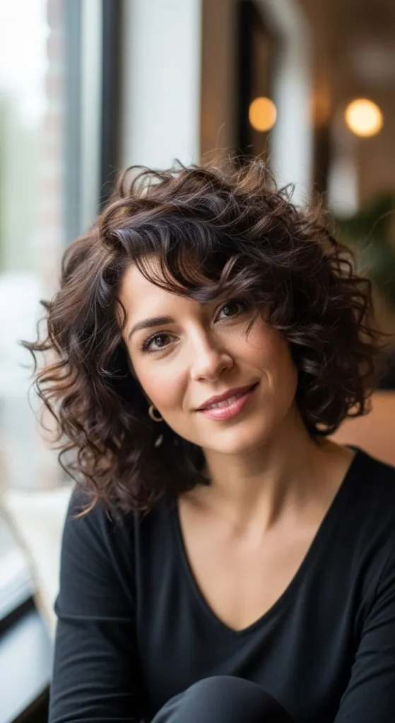 A curly lob sits between short and long hair. It feels modern and easy to handle. Light layers prevent the cut from looking boxy and stiff. This style is great for working women and students because it dries faster than long hair. Styling takes less time, and a small amount of mousse is enough. For DIY care, deep-condition once a week using coconut oil and regular conditioner. Leave it on for 20 minutes, then rinse. Avoid heavy creams that weigh curls down. Choose lightweight products from local stores. Scrunch hair upside down for more lift.