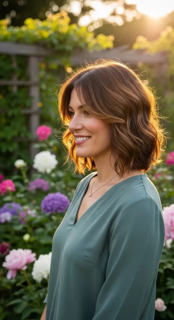 Crown layers add height and help flat roots. This is great for fine or low-volume hair. Clip roots while drying and use dry shampoo when needed. This bob feels lively and neat.