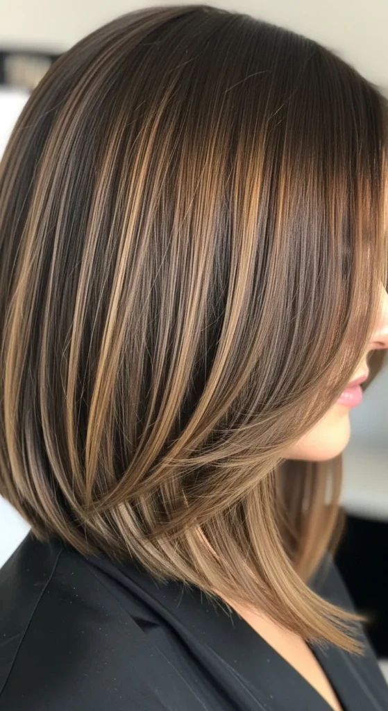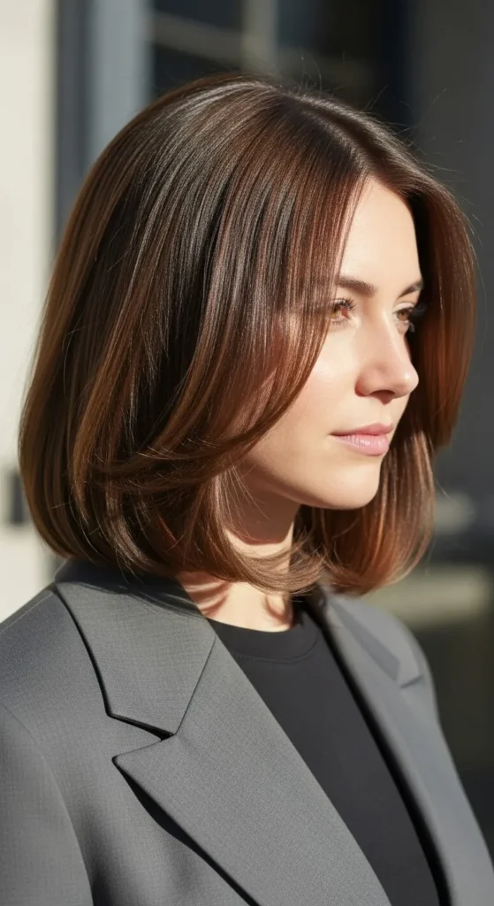 A layered lob is chic and versatile. Layers prevent a blunt look and make hair appear thicker. Blow-dry with a round brush to create a soft inward curve at the ends. Use light serum to enhance shine. This cut is low maintenance but stylish. Small DIY trims keep layers fresh between salon visits. Ideal for medium-length hair.