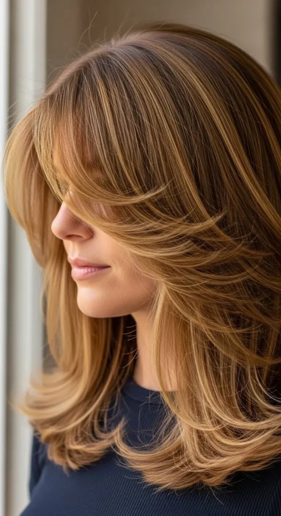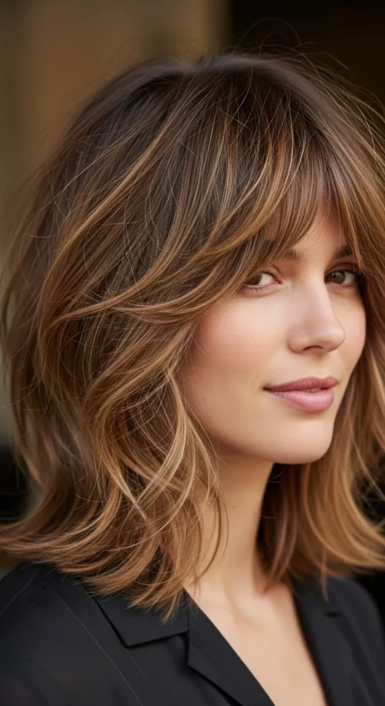 Long layered bangs blend seamlessly into the rest of the hair. They soften the face and add volume near the front. Styling is simple: blow-dry bangs using a round brush to create movement. DIY maintenance includes trimming every 6–8 weeks to keep length balanced. Works for straight and wavy hair, offering a versatile, stylish look.