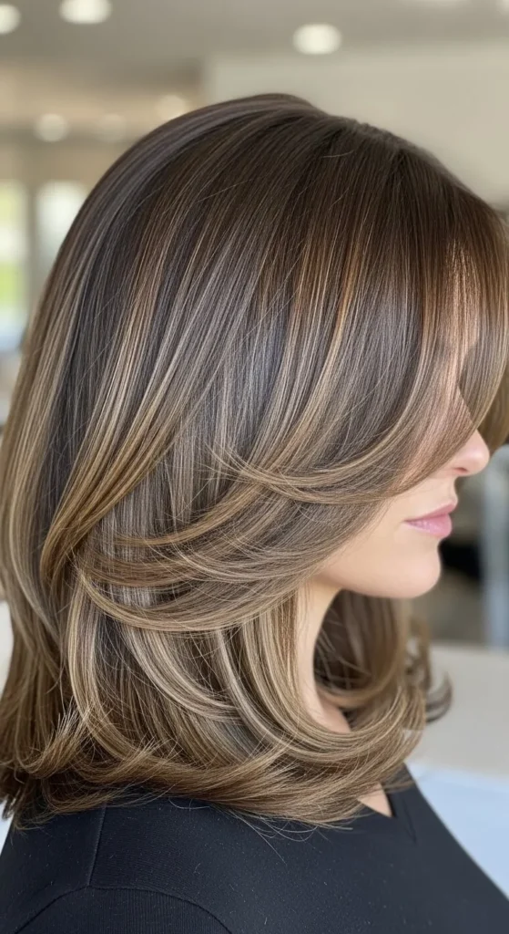 Feathered layers create soft movement around the face. They’re perfect for medium-length hair that needs lightness. Style with a paddle brush to enhance the feathered look. At home, trimming ends gradually keeps the layers intact. Feathered cuts reduce heaviness while maintaining hair’s natural flow. Pair well with straight or wavy styles.