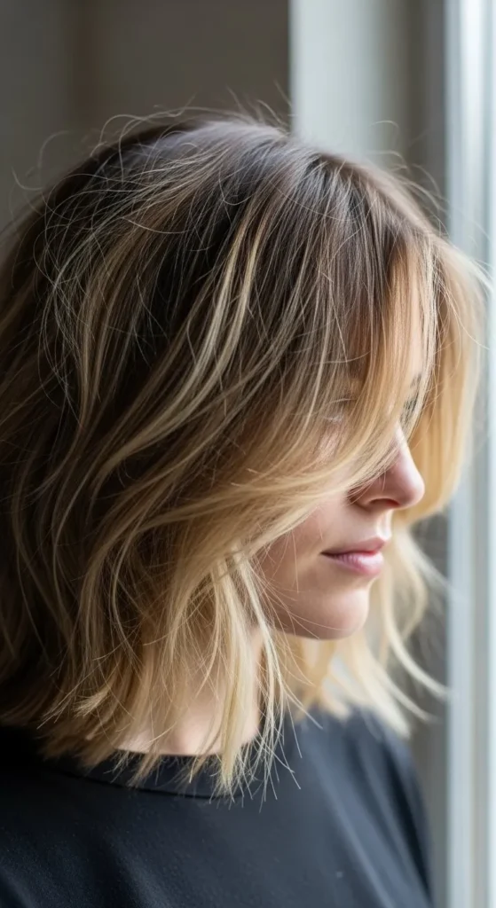 Choppy layers add edgy movement and make thin hair appear thicker. Perfect for casual, effortless styles. To DIY, trim small pieces unevenly and style with texturizing spray. Even a few strategic layers transform flat hair. Pair with air-dried waves or light curling for extra body. Regular trims prevent the cut from looking unkempt while keeping the style fresh and lively.