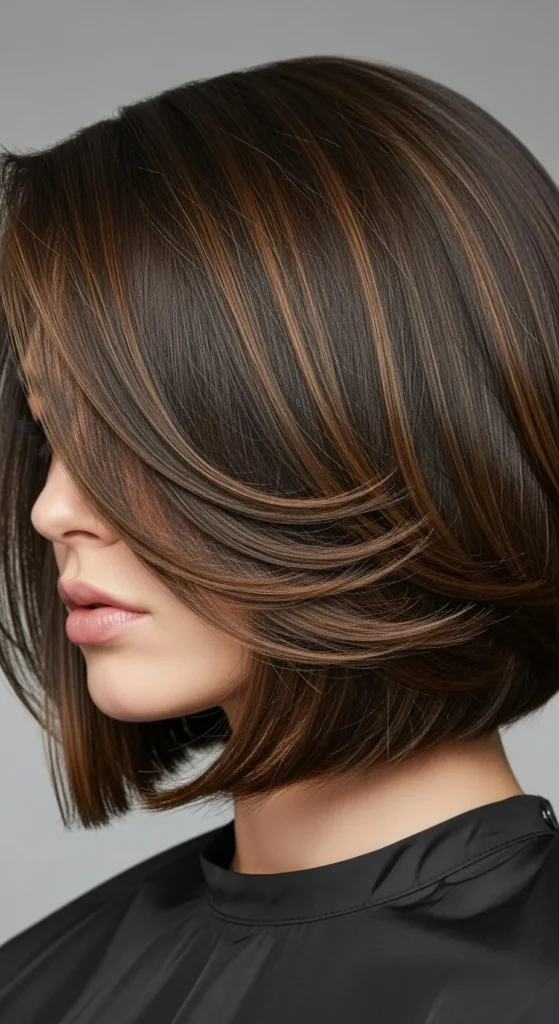 Short bob layers add texture and avoid a flat look. Layers give volume at the crown and soft edges around the face. Style with lightweight mousse for lift or straighten for sleekness. DIY maintenance: trim every 6 weeks to preserve shape. Works for fine or thick hair, creating a fresh, youthful appearance.