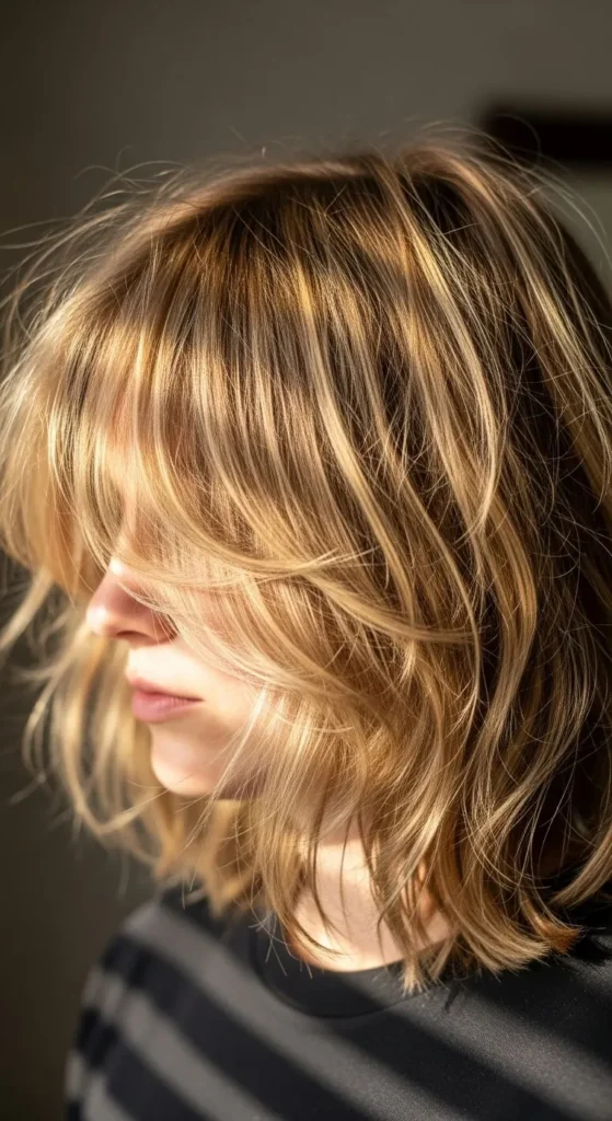 The layered shag brings a casual, edgy vibe to medium or long hair. Layers add texture and body while making styling quick. Use sea salt spray for a beachy finish or air-dry for natural volume. DIY trims can focus on ends to maintain shape. Shags suit thick or thin hair, giving lift and preventing a flat appearance. Regular trims keep layers playful.