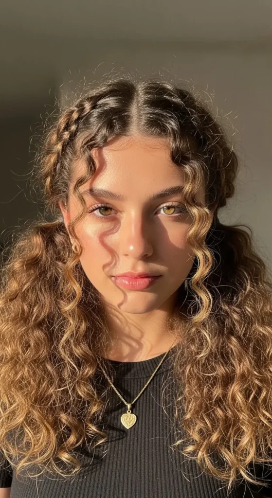 Curly braided pigtails are charming and simple. Split hair, braid each side loosely, and let curls fall naturally. DIY tip: Add ribbons or fabric scraps for style.