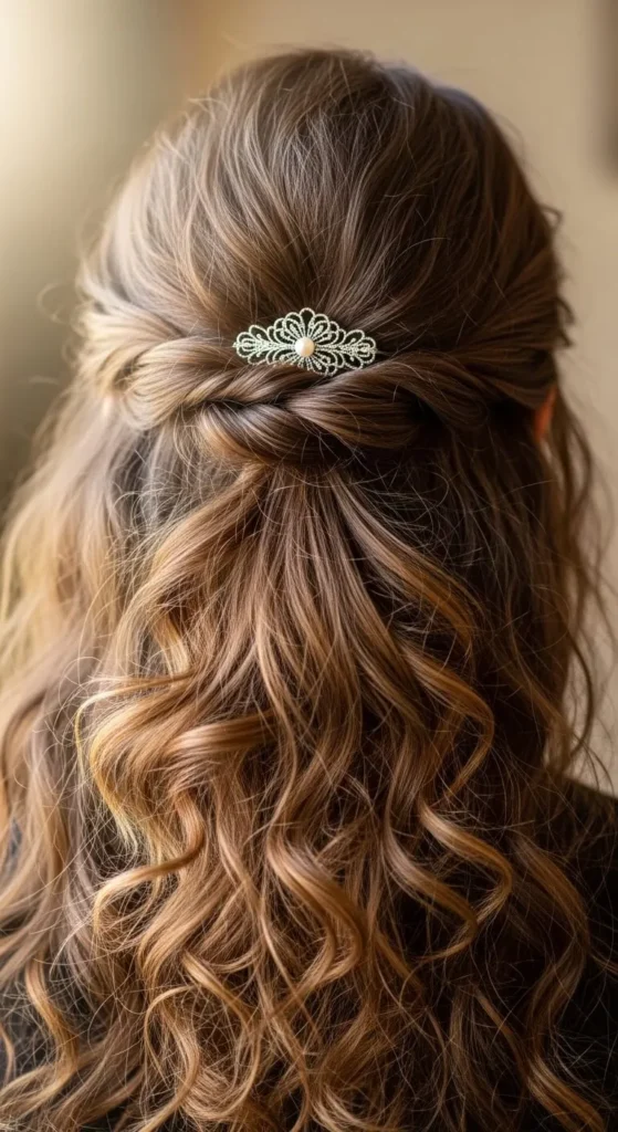 24. Curly Half-Up Twist with Accessory