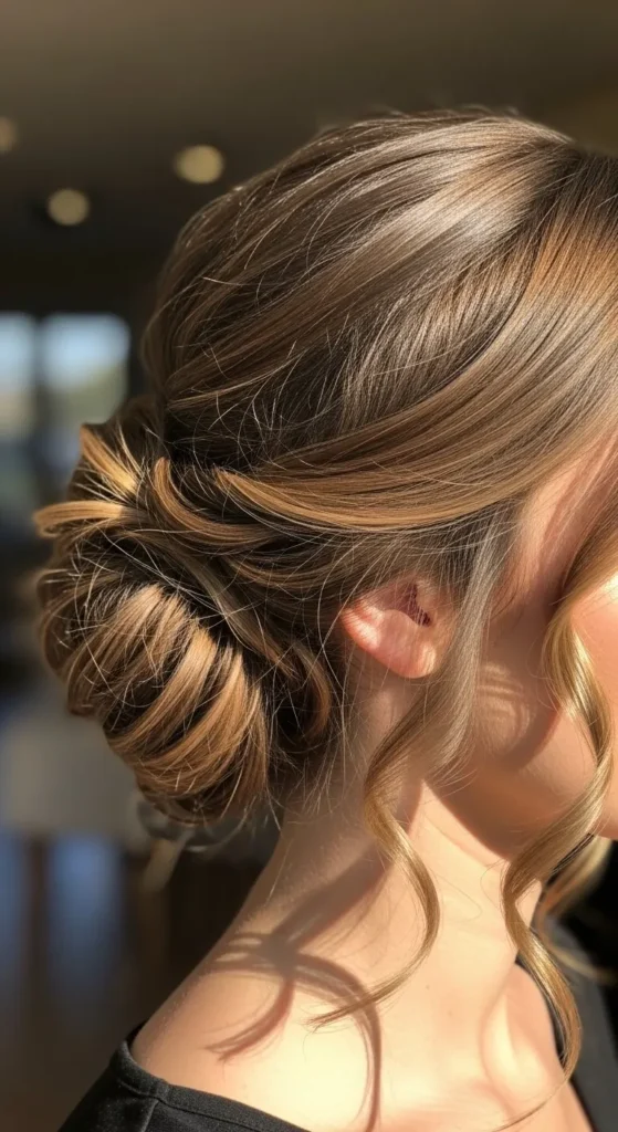 A curly French twist is classic and elegant. Gather hair at the back, twist upwards, and tuck the ends in. Pin securely with bobby pins. DIY tip: Mist lightly with hairspray for hold without stiffness.