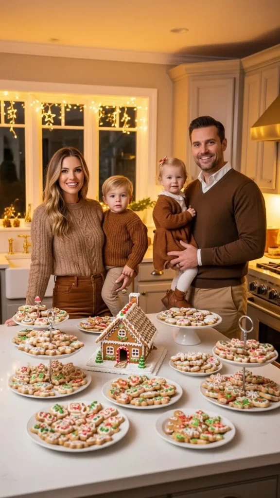 Warm brown outfits create a cute gingerbread vibe. You can mix tan sweaters, caramel tops, or chocolate-brown leggings. These shades blend naturally and make skin tones look warm. If you want a crafty touch, cut tiny “icing” shapes out of white felt and pin them loosely on sleeves. Kids love this because it looks playful without needing fancy clothes. Brown outfits pair well with cookie-themed props like wooden spoons or simple mugs. Thrift shops often offer great brown pieces under a low budget. Keep backgrounds simple so the color stands out. This idea works especially well in kitchens or near wooden décor.