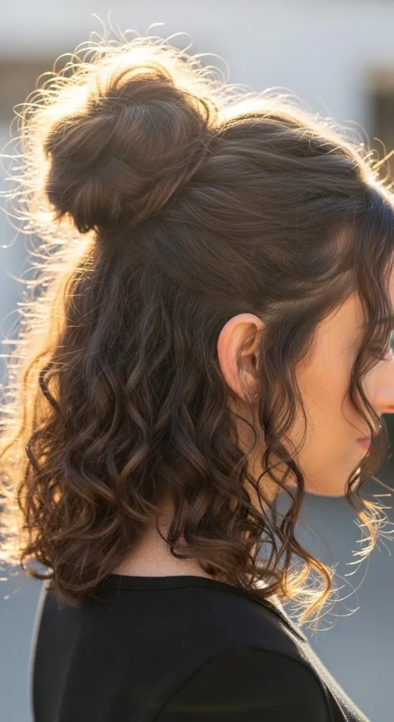 15. Curly Half-Up Bun