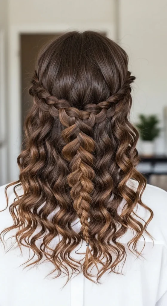 Braid along the crown and let sections fall through. Practice on small sections first. Use pins for support. This style adds beauty to everyday curls.