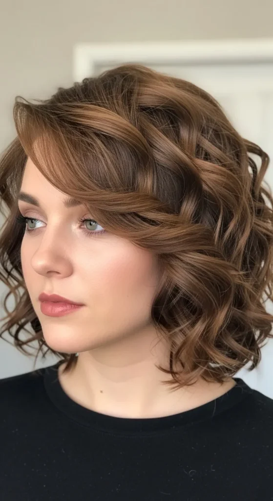 23. Curly Bob with Side Sweep